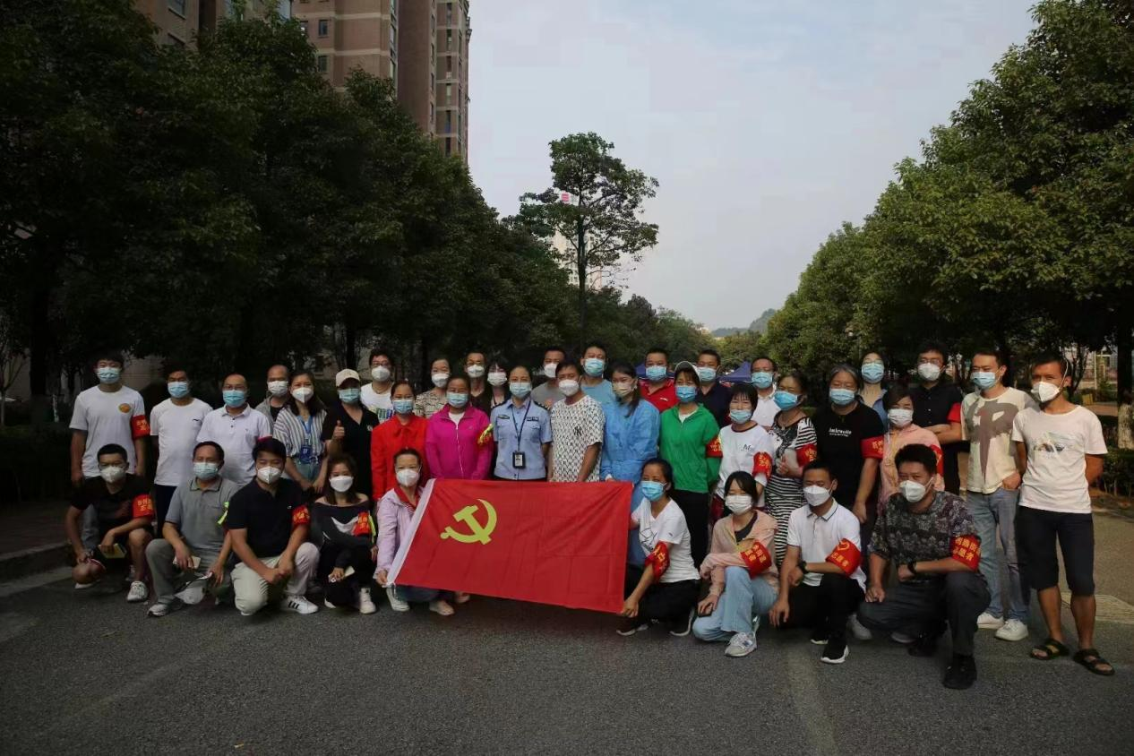 曹世興與黨員同志在一起,駐守好毓秀社區(qū)的卡點(diǎn)